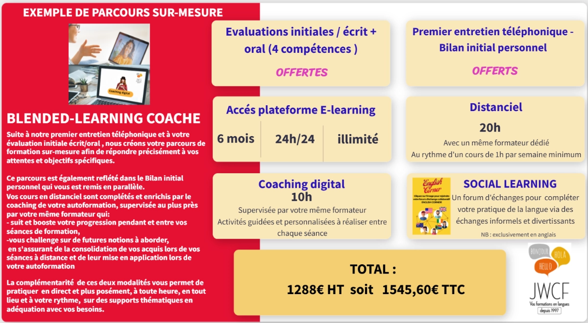 Voici quelques exemples de parcours sur-mesure proposés à des stagiaires JWCF. Basé sur la personnalisation des formations, JWCF a forcément une solution pour vous.